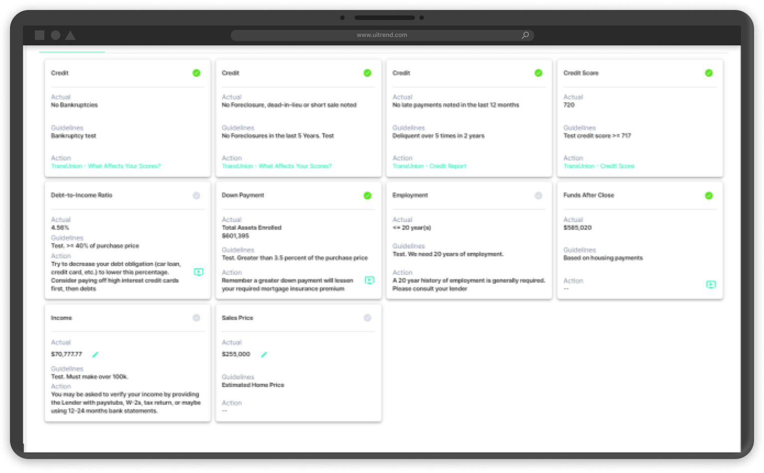 By allowing users to self report this made it so that they could quickly get an estimate and if they knew their financial situation was changing or different in some way they could adjust on their own to get a more accurate picture. This feature was helpful for users but for the loan officers that were using this to help people close on a loan it was not. They needed actual verified info in order to complete a deal and a user could enter whatever info they wanted.