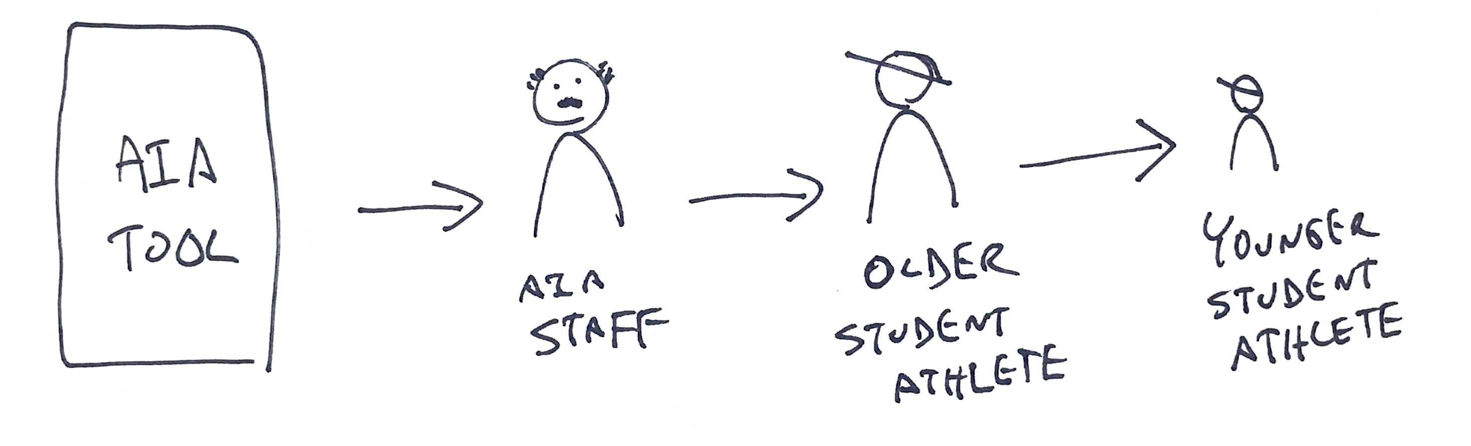 One thing that was made clear in this process was identifying who would be using our app and what their needs were. Even though student athletes (college students) would be viewing it, the early adopters would be AIA staff (1000 stateside) and volunteers. Another thing that we realized is that there would be users that would use this both as a mentor and mentee. For example, an AIA staff is mentoring a student athlete and after a couple of years, that athlete begins mentoring freshman athletes. So they would need to be able to interact with the app in both of those ways.