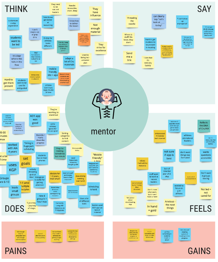 From what we had gathered, I put together a couple of empathy maps; one for a student athlete and one for a mentor.